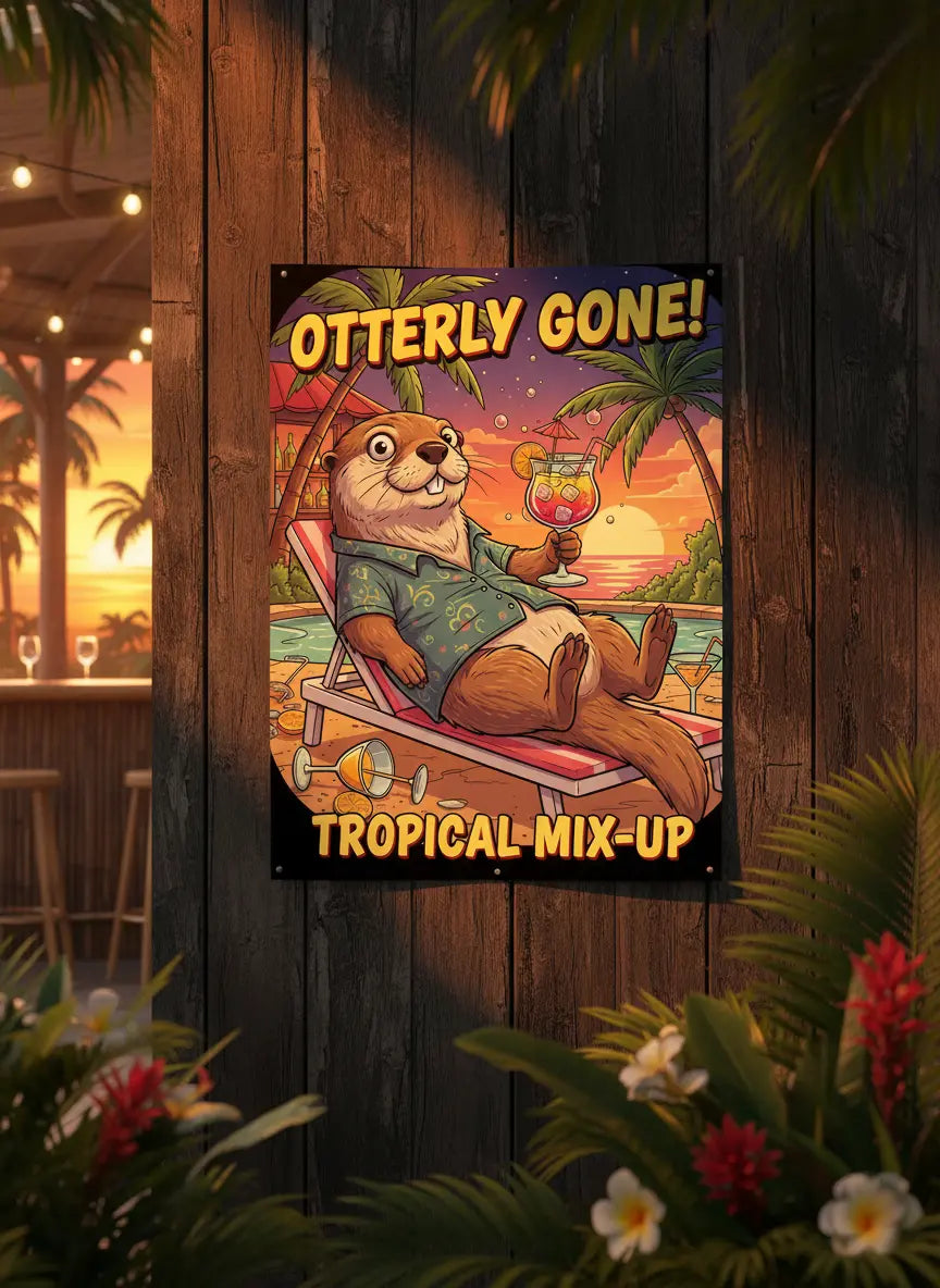 Inject life and color into your walls with the Otterly Gone Tropical Mix Up Poster. Its unique tropical theme, sunset orange hues, and whimsical design make it a fun yet stylish piece of poster wall art that enhances your home or office with creativity and joy.