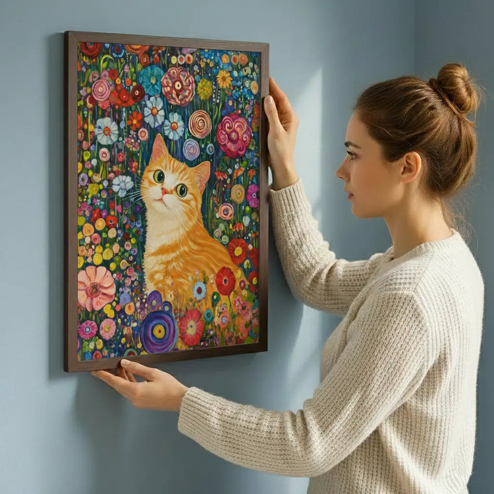 Elevate your space with the Whimsical Ginger Cat Floral Garden Art Poster: a perfect blend of charm, artistry, and versatile wall decor that makes every room feel inviting and stylish.